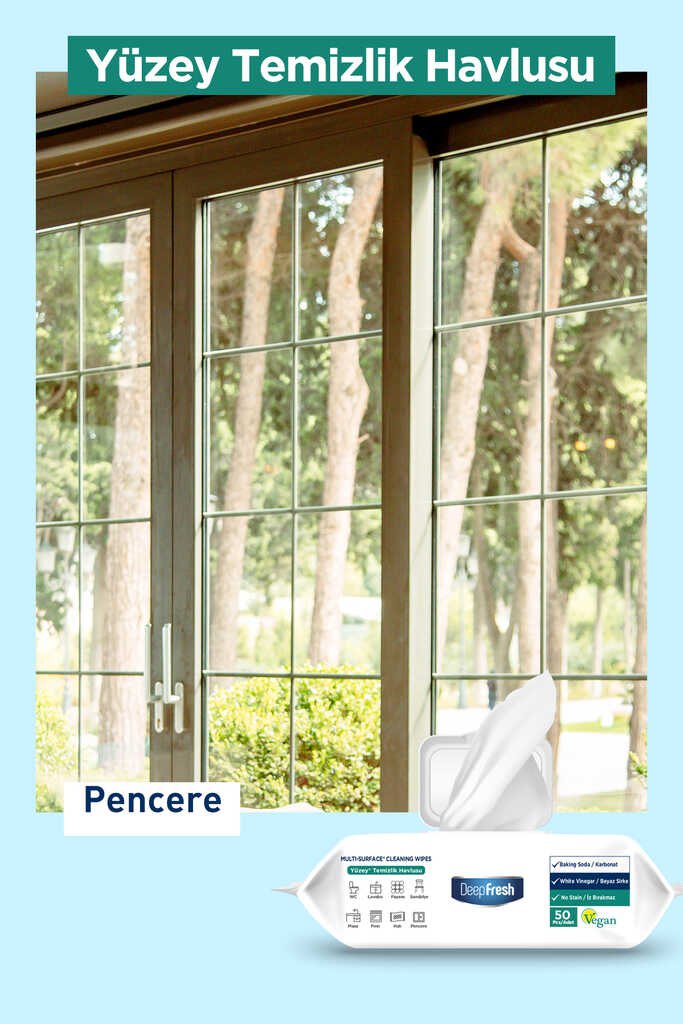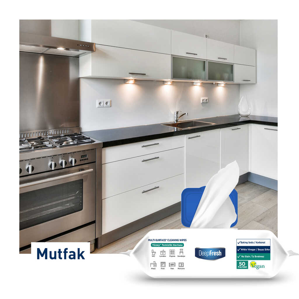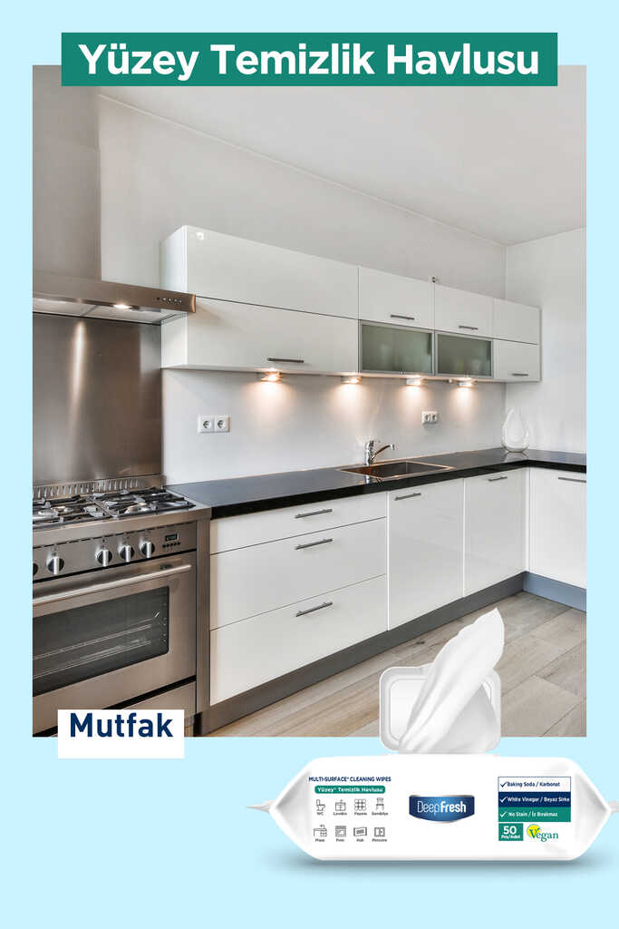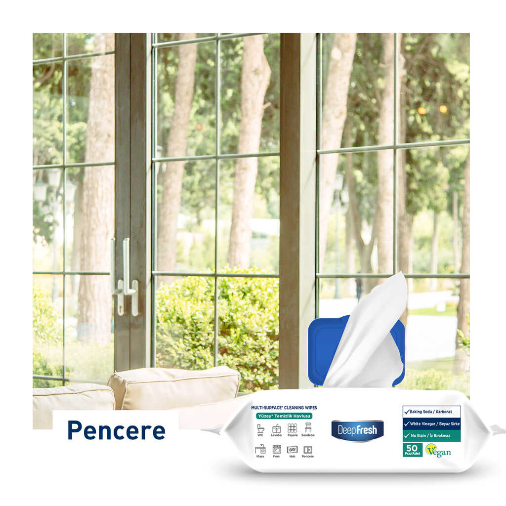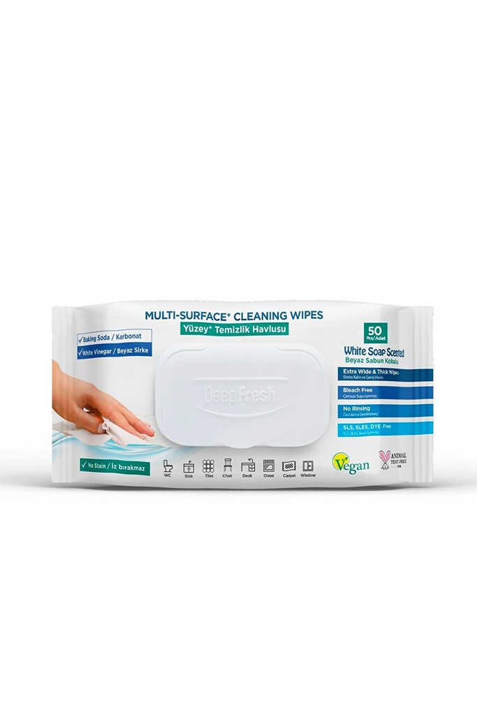Deep Fresh İz Bırakmaz Yüzey Temizleme Havlusu Karbonat & Beyaz Sirke 50 Yaprak