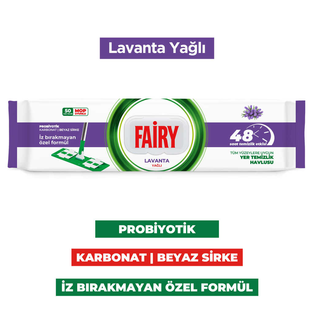 Fairy Power Wipes Mop Uyumlu Yer Temizlik Havlusu 50 Yaprak |Lavanta Yağlı | 3 Adet