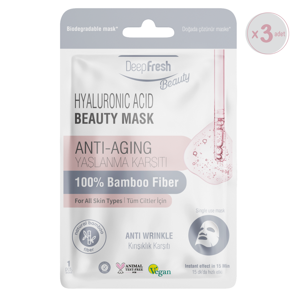 Deep Fresh Tek Kullanımlık Hyaluronic Acid Yaşlanma ve Kırışıklık Karşıtı Yüz Maskesi 3 adet