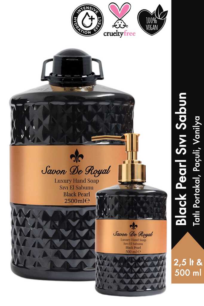Savon De Royal Black Pearl Luxury Sıvı Sabun 2,5 lt & 500 ml | Portakal, Paçuli, Vanilya | Vegan, Nemlendirici